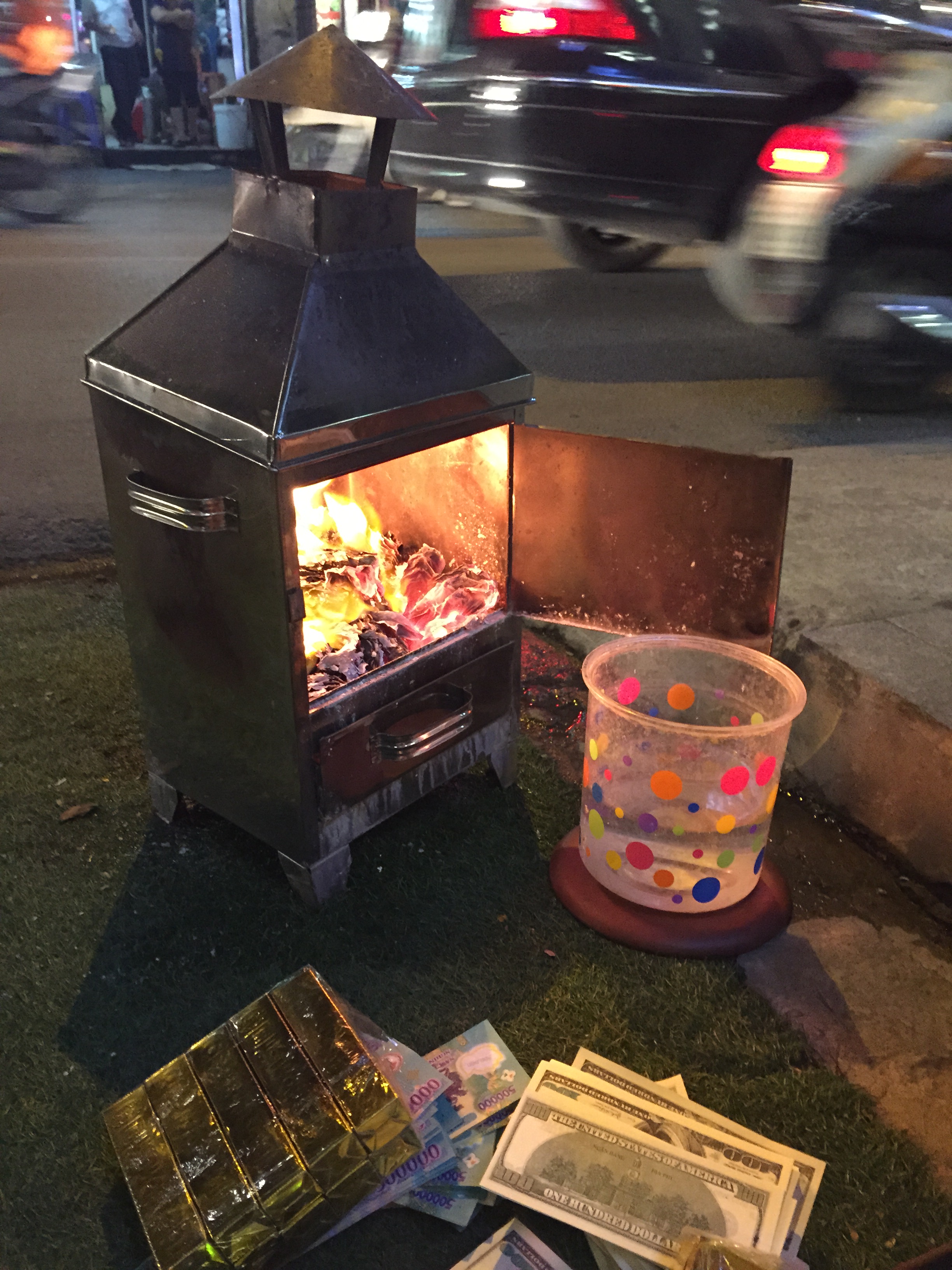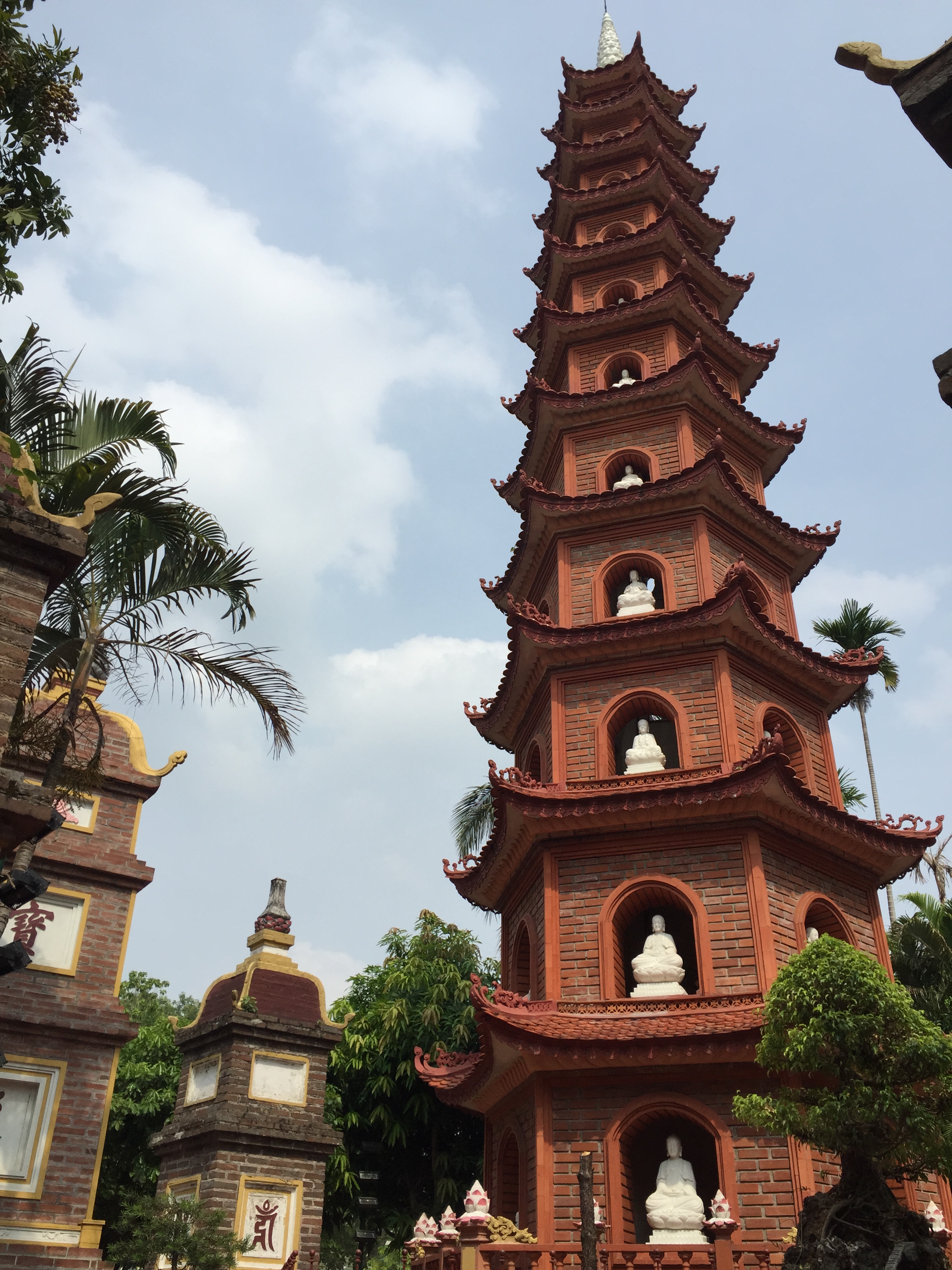 Although it had a ton of shading, it was one of the most humid areas I have been to here in Hanoi. We indulged in well-deserved ice cream at the exit and continued on our tour to the Trấn Quốc Pagoda, which is the oldest pagoda in Hanoi. It had a very picturesque view along the West Lake and had a constant aroma of incense. Walking in to the temple, shoes must come off, before observing all the Buddha shrines. It is filled with money and food, which visitors give as a gift to the Gods to give them good luck.