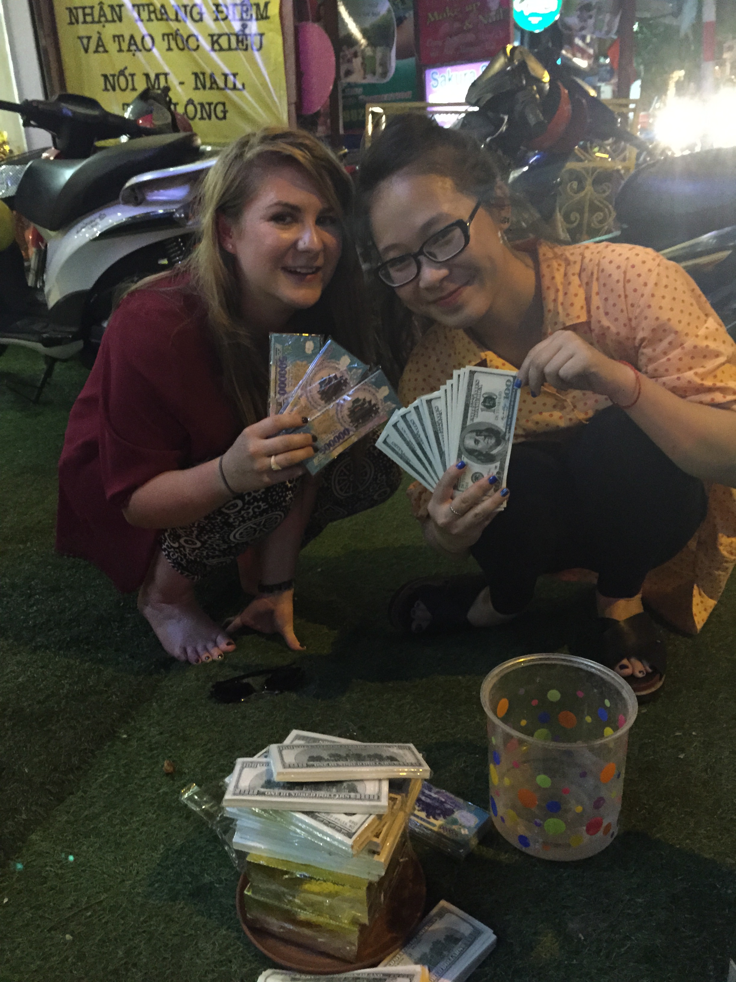 When we got our Vietnamese bank accounts we had to fill out a ton of papers. It got kind of irritating, but Thuan and Hoa, our coordinators were so helpful and did the hard parts for us. Downstairs at Vietcombank we were able to exchange our USD to VND. I converted $1100 USD and left with just over $24.5 million VND. It felt pretty awesome! After a long while at the bank, we headed back to Long Biên to get our international SIM cards. It cost $70,000 VND to activate for 3G, which is only $3.21 USD. I do believe this is the monthly cost and then you just add however much money for minutes. Kind of ridiculous how little it is to have a cell phone plan out here.