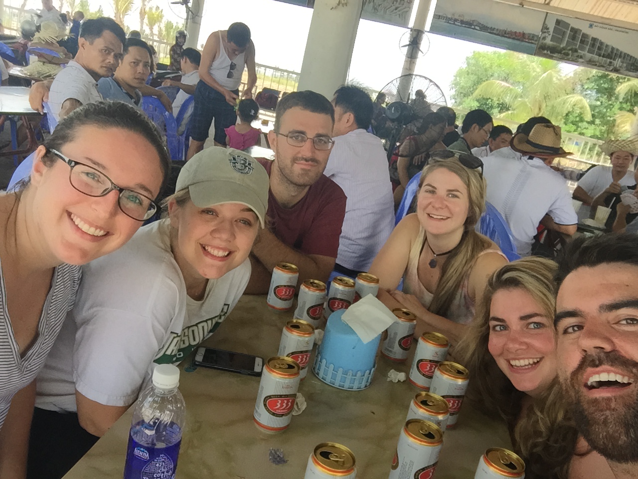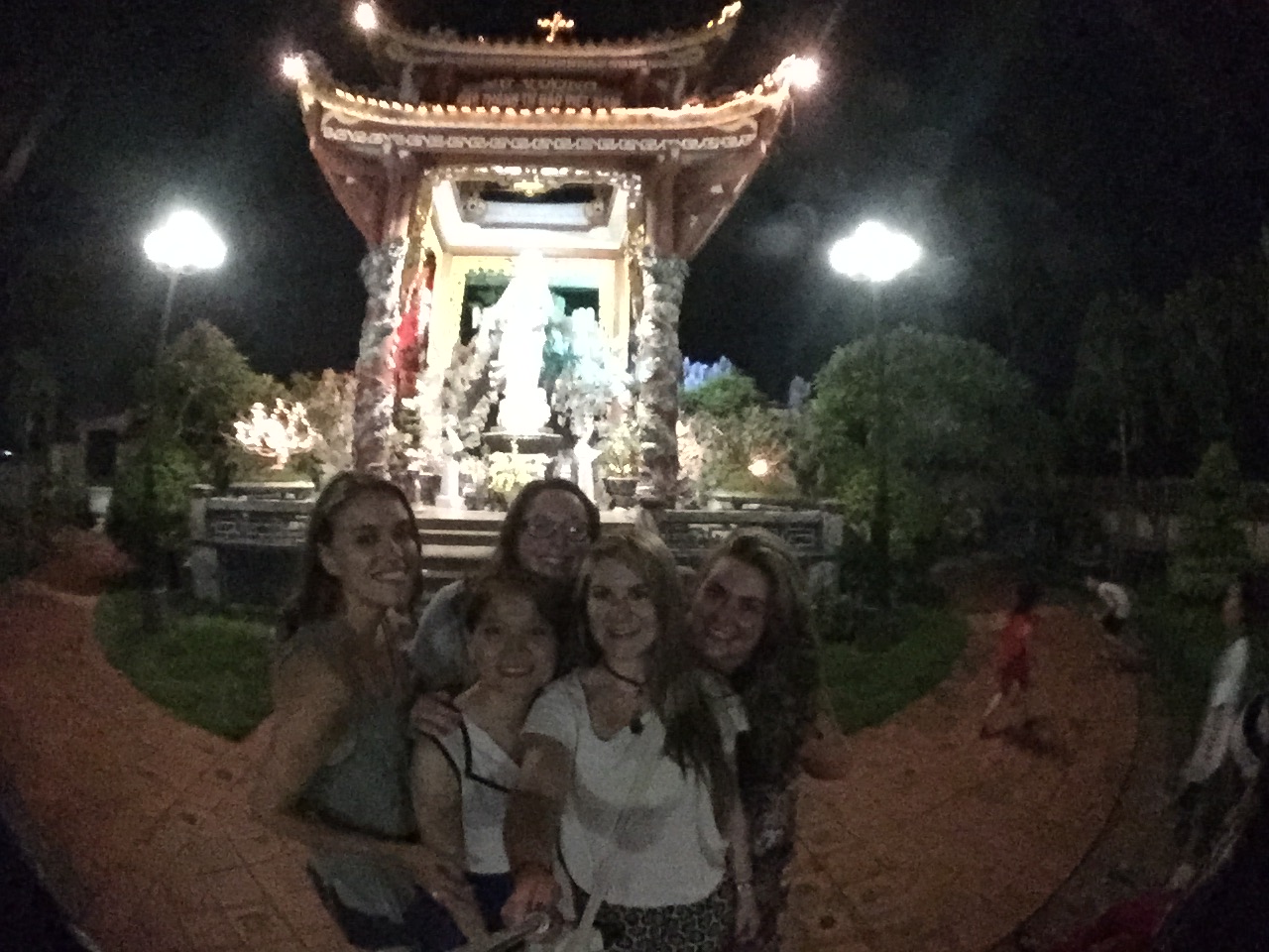 When we got back to the boat, we took well-deserved showers and met on the upper outside deck for happy hour. Piña coladas, margaritas and long island iced teas all being slurped down before dinner and karaoke. Another large course meal with my favorite dish shockingly being fresh bbq’d squid. After a filling dinner, we continued on with happy hour and began some pretty hilarious karaoke. Thuan and Hoa came with us. Hoa’s ringtone is “Kiss Me” and every time it plays we all break out in song to her. So naturally this was our group karaoke song. At night, these big flying ants decided to come out and join our party. Apparently they are harmless and don’t bite, yet I have managed to acquire four bug bites this past weekend. After karaoke, we went “squid fishing.” It was fun to see if we could catch anything off the bamboo pole with fish wire and bait. Staring in to the lit water and watching the jellyfish go by was a very relaxing and calming few moments. No one caught any except for the fisherman who came running in with a freshly killed squid in a net during dinner.